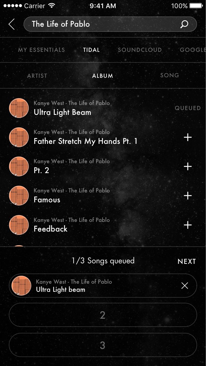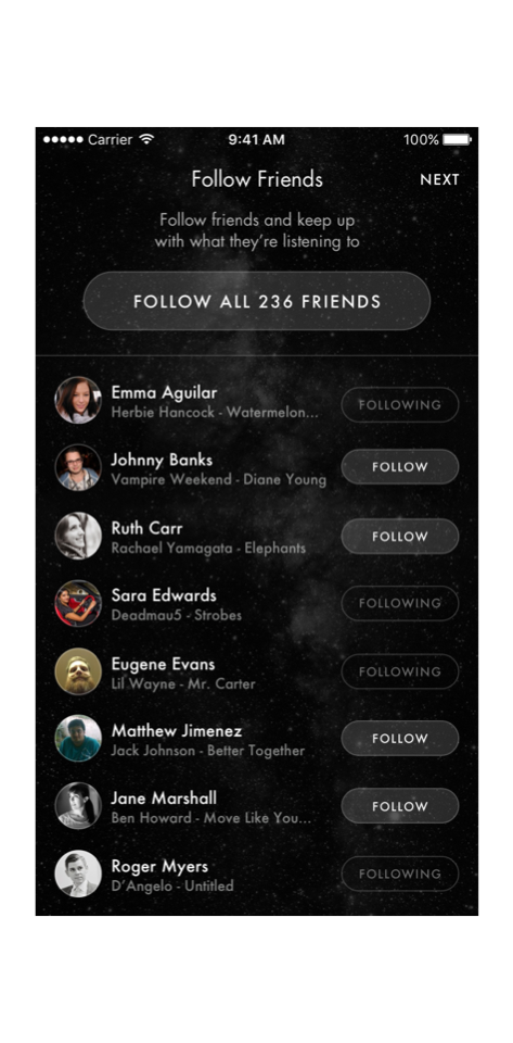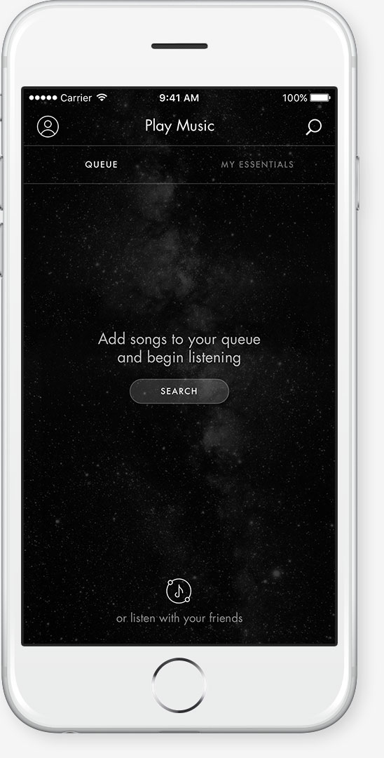 On Neptune, listening to music alone is just as important as listening to music with your friends. The UIs for personal and group listening are visually and functionally parallel and navigating between them is simple and accessible.