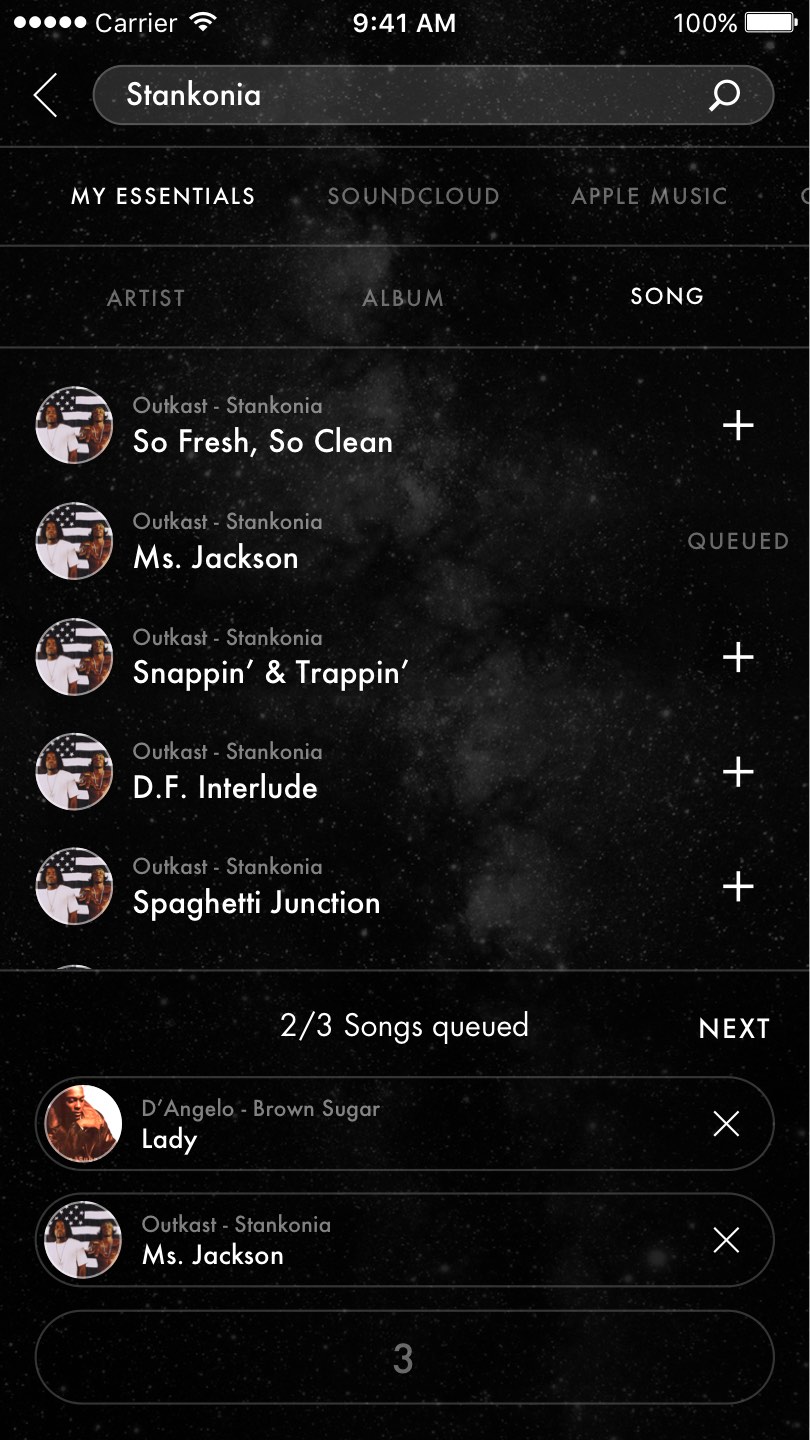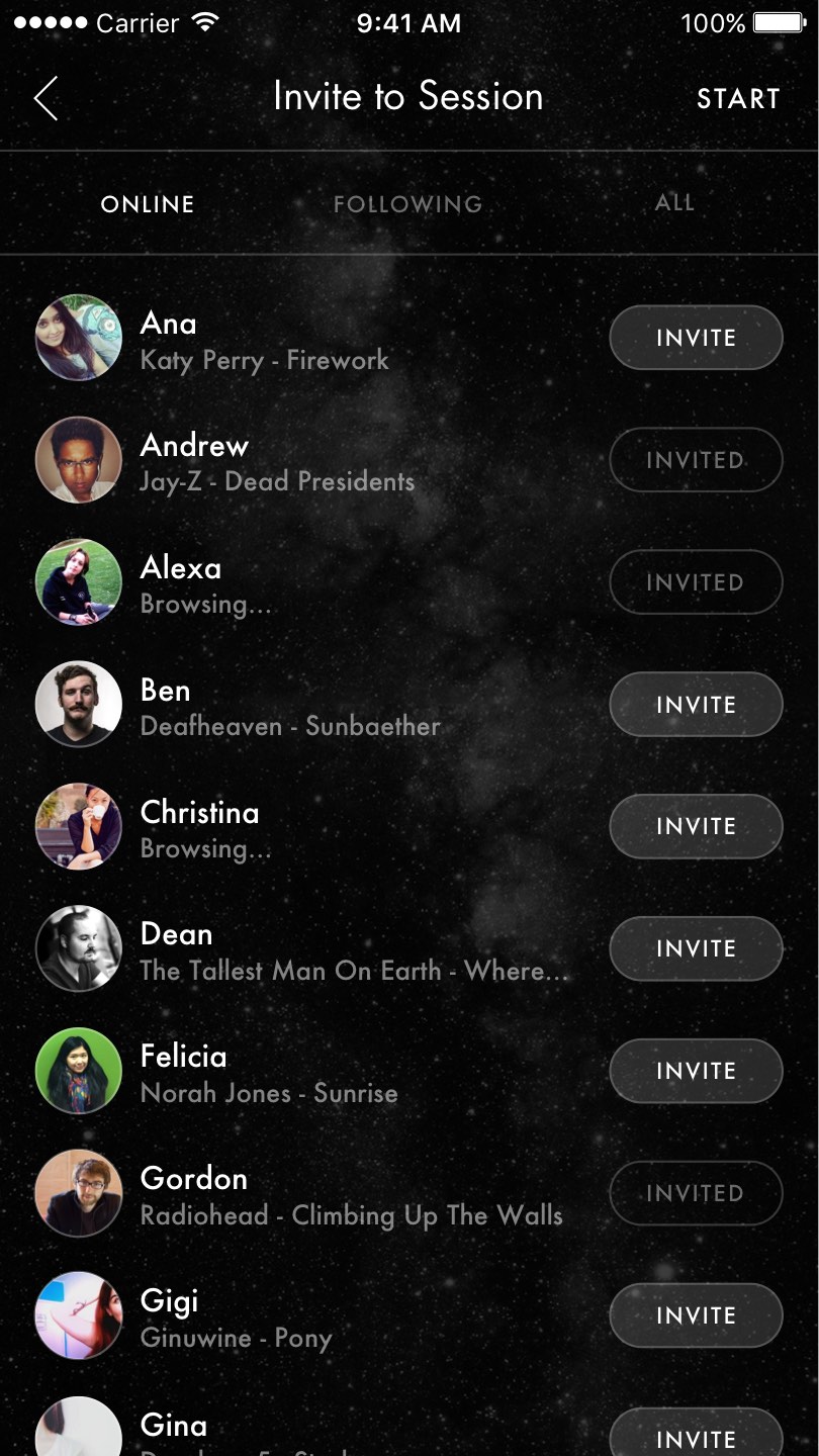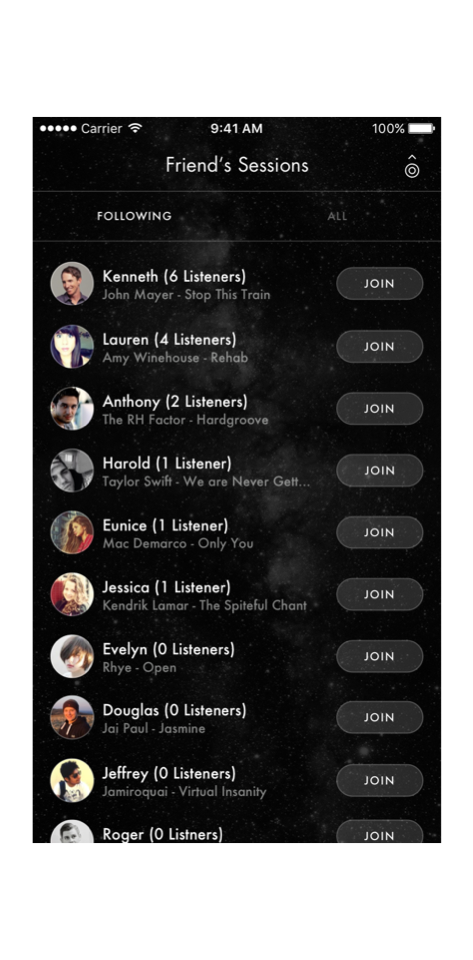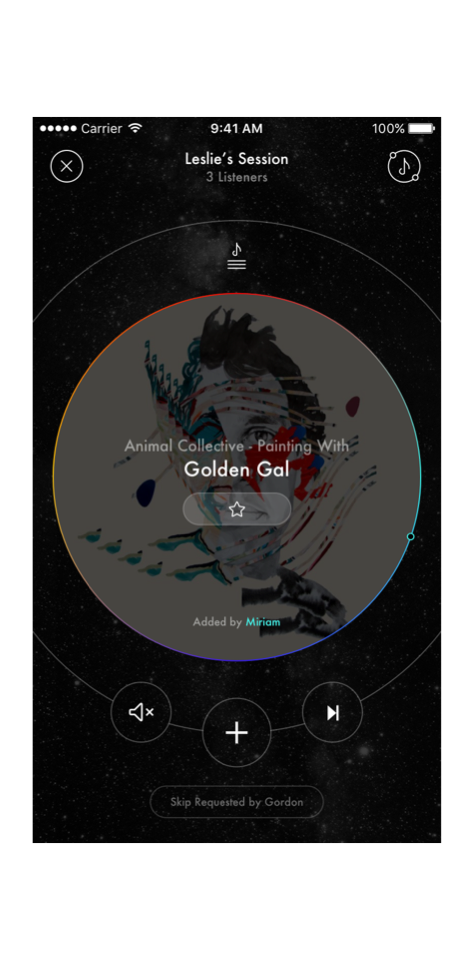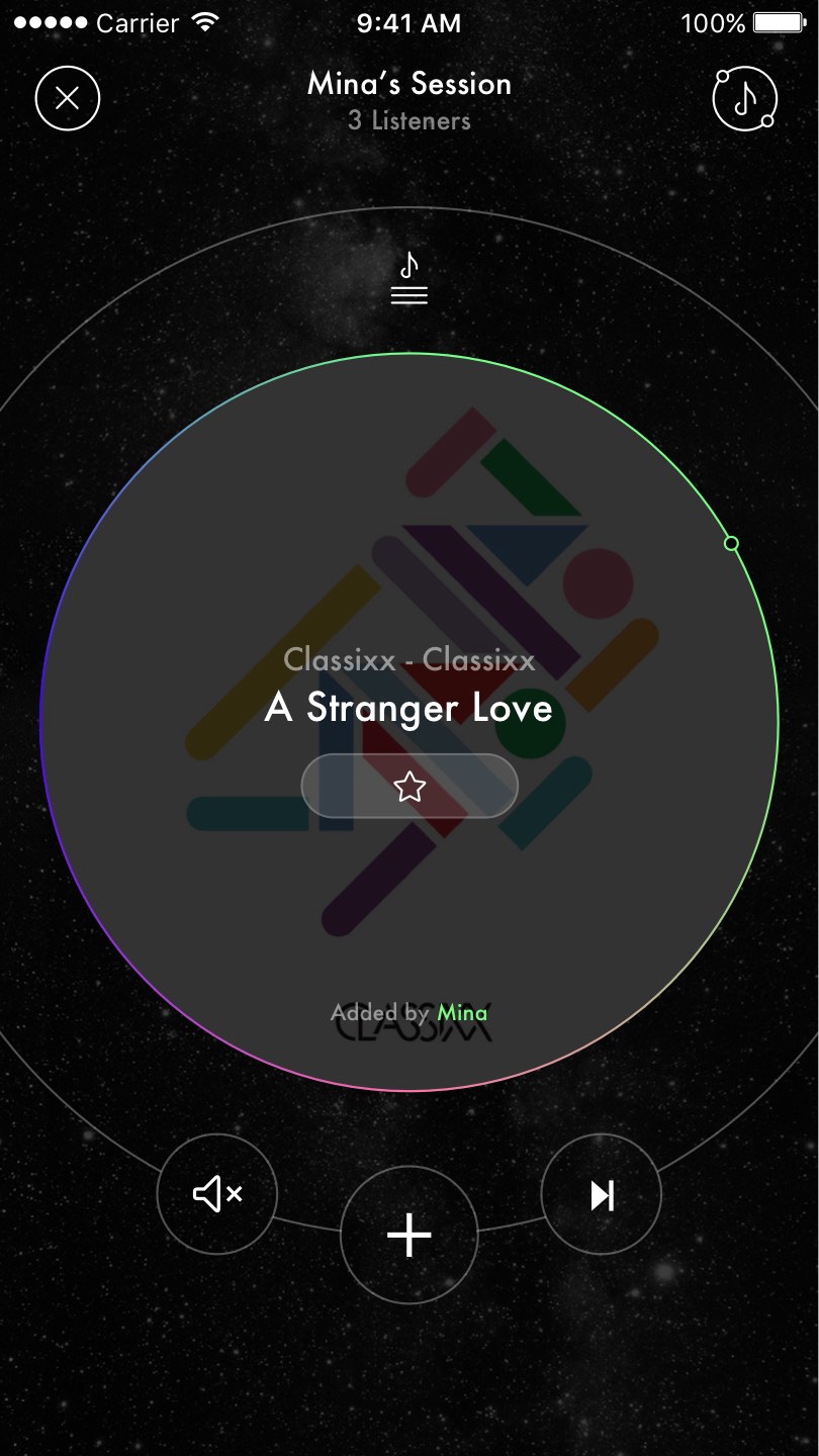 Neptune replicates the physical interaction of sharing and listening to music with friends in the same room. A Neptune user can either listen to music alone or invite friends to a listening session, in which songs can be collectively added to a queue and listened to simultaneously.