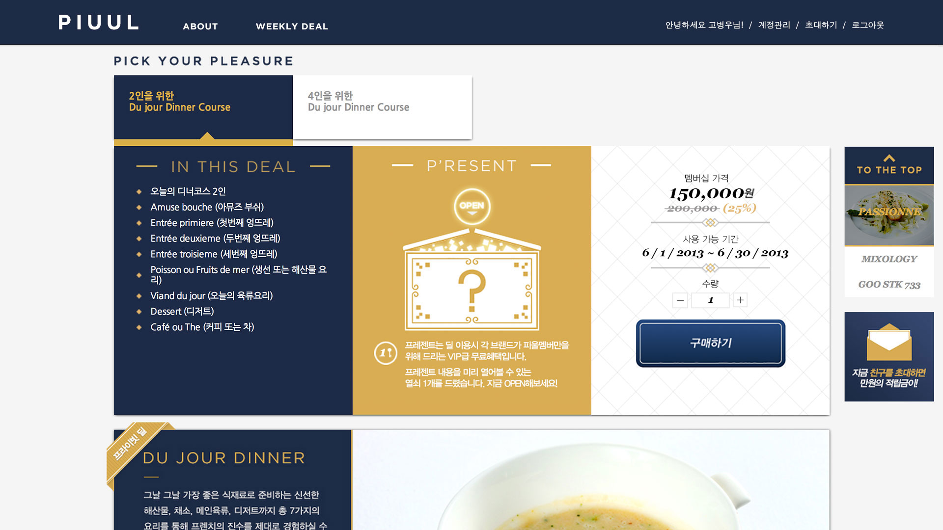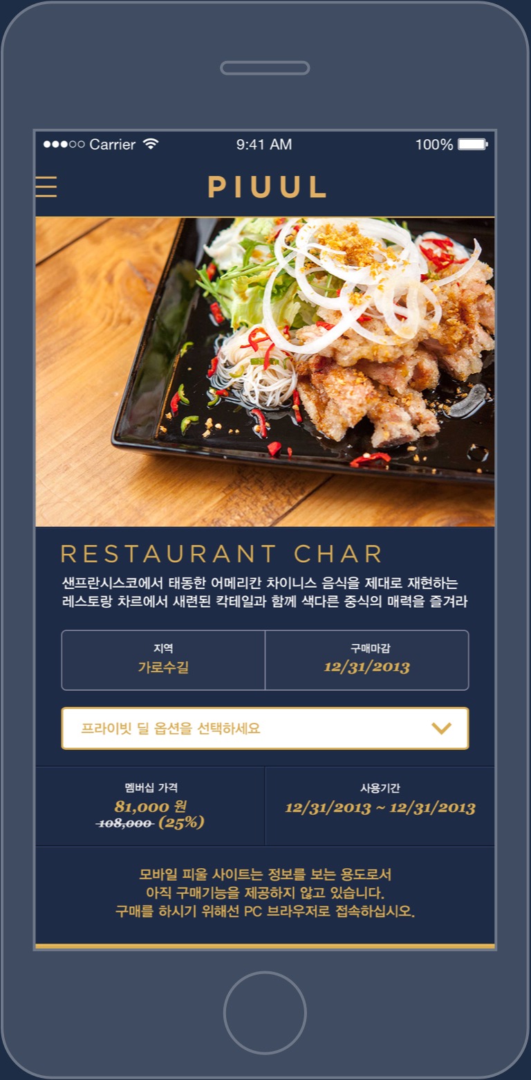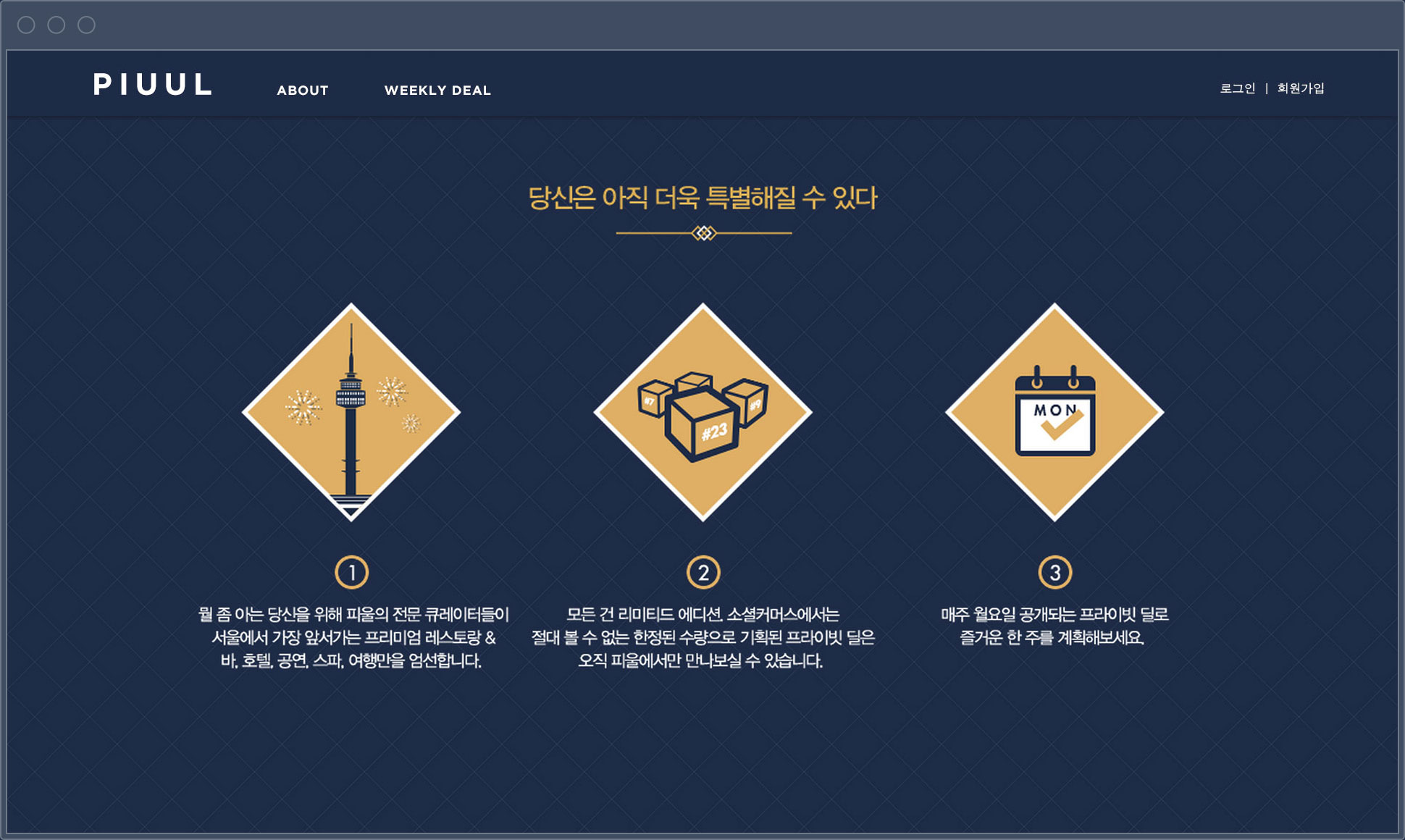 Piuul was a Korea-based luxury lifestyle service that provided exclusive discounts for Seoul's esteemed food, beverage, and hospitality businesses. Piuul catered to the ever growing demand for luxury goods and services, which Koreans, on average, spend 5% of their income on. Founded by four other CMU graduates and myself, Piuul operated from 2012 to 2013.